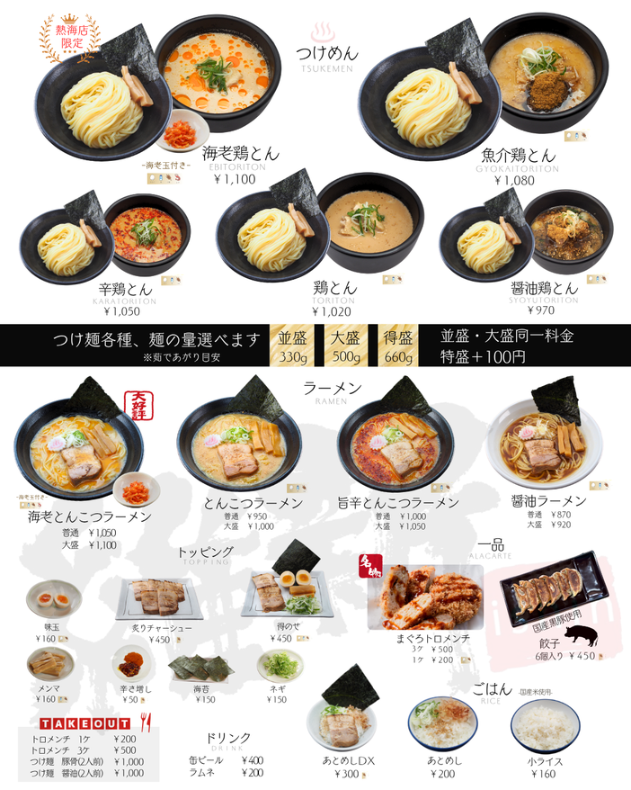 並盛・大盛 同料金!(特盛は+100円)